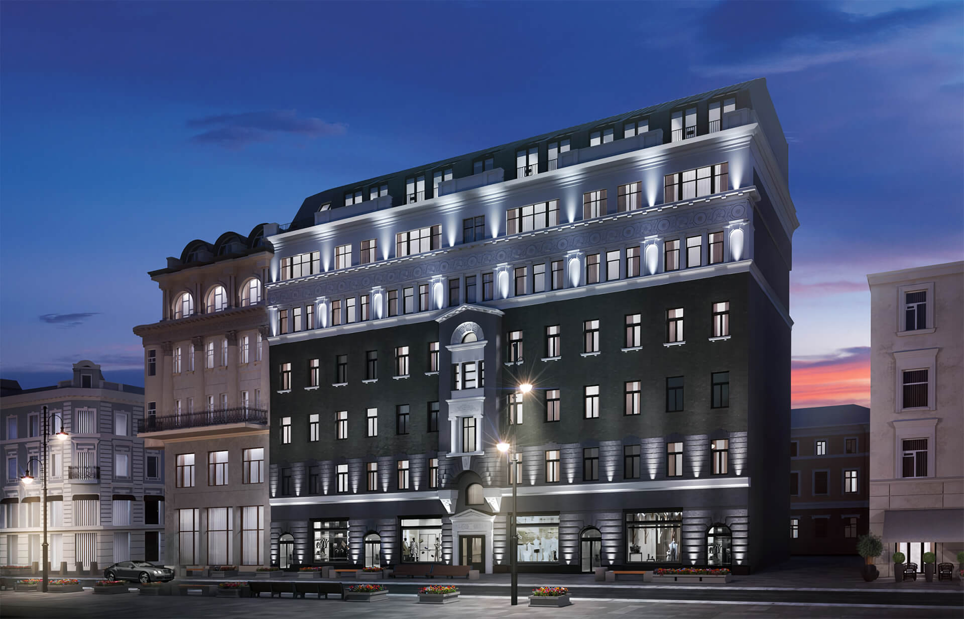Дом оснащён передовыми инженерными системами, включая современные системы безопасности и климат-контроль. Особую атмосферу создают просторные пентхаусы с панорамными окнами, из которых открываются виды на исторический центр столицы. Каждый элемент интерьера и экстерьера продуман до мелочей, чтобы подчеркнуть статусность и уникальность жилого комплекса.
